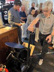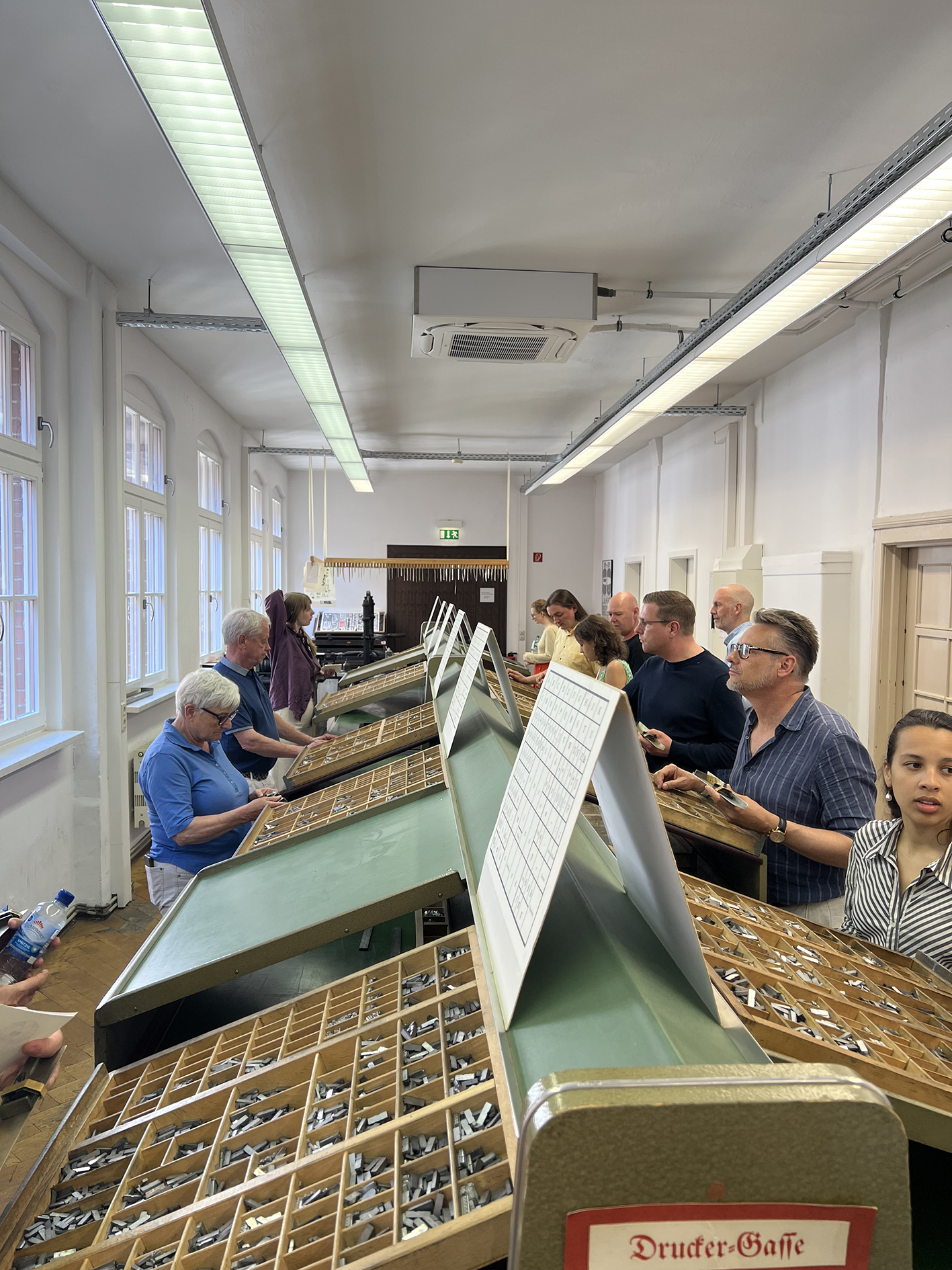 Danach machte der Mitarbeiter des Museums Hans-Olaf Bote mit uns einen Rundgang durch die Hallen, erklärte und führte vor: von Gutenberg (inklusive Live-Gießen von Bleilettern) über riesengroße Litho-Maschinen bis hin zum Linotypeverfahren. Es war schön, diese ganzen, oft überdimensionalen Gerätschaften einmal »in Aktion« sehen zu können.